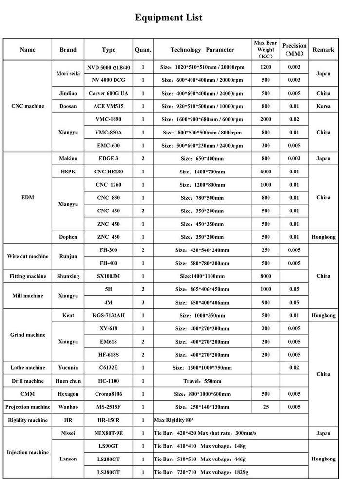 > Equipment list